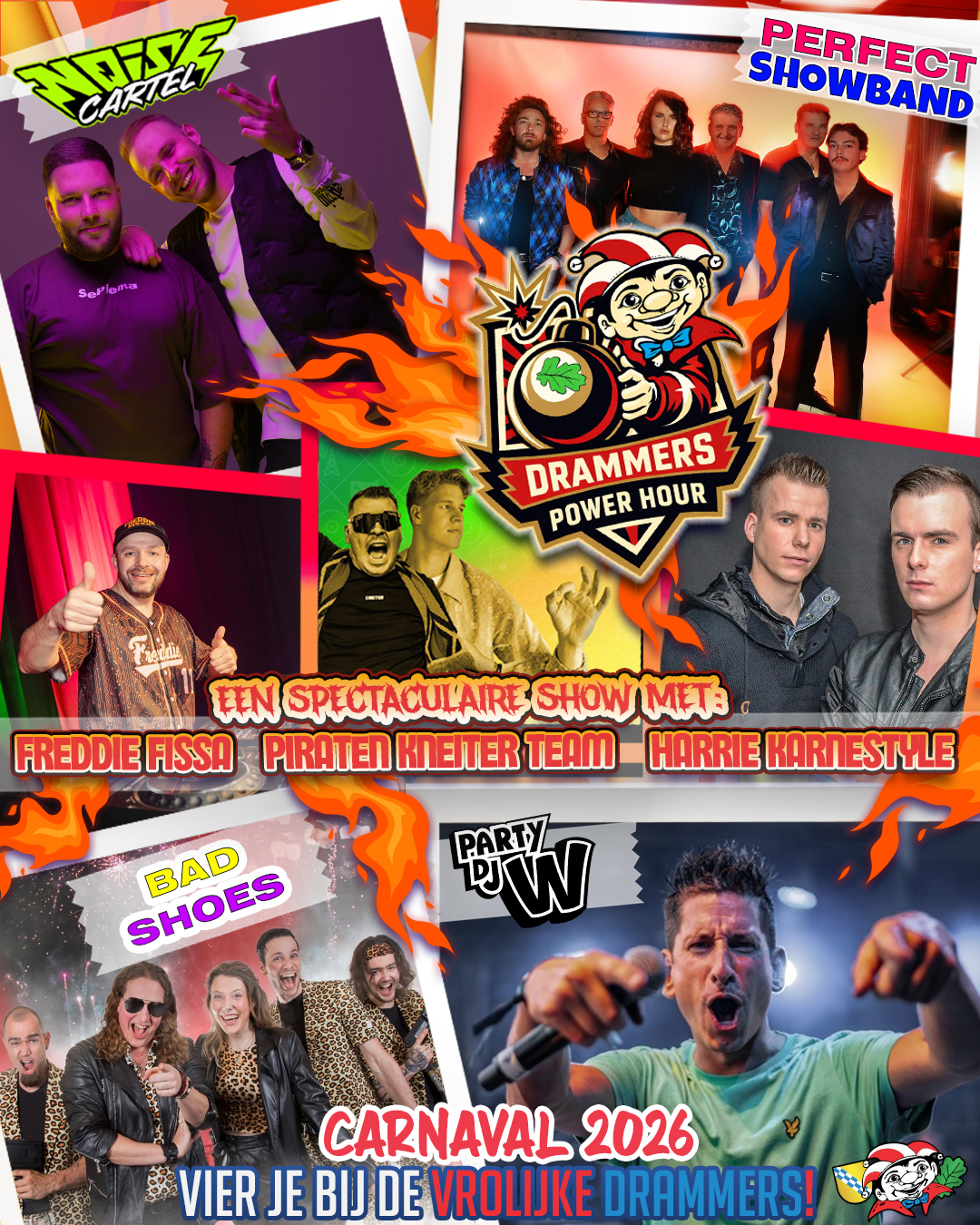 19.30 uur Carnavalsfeest met de PERFECT SHOWBAND! en DRAMMERS POWER HOUR