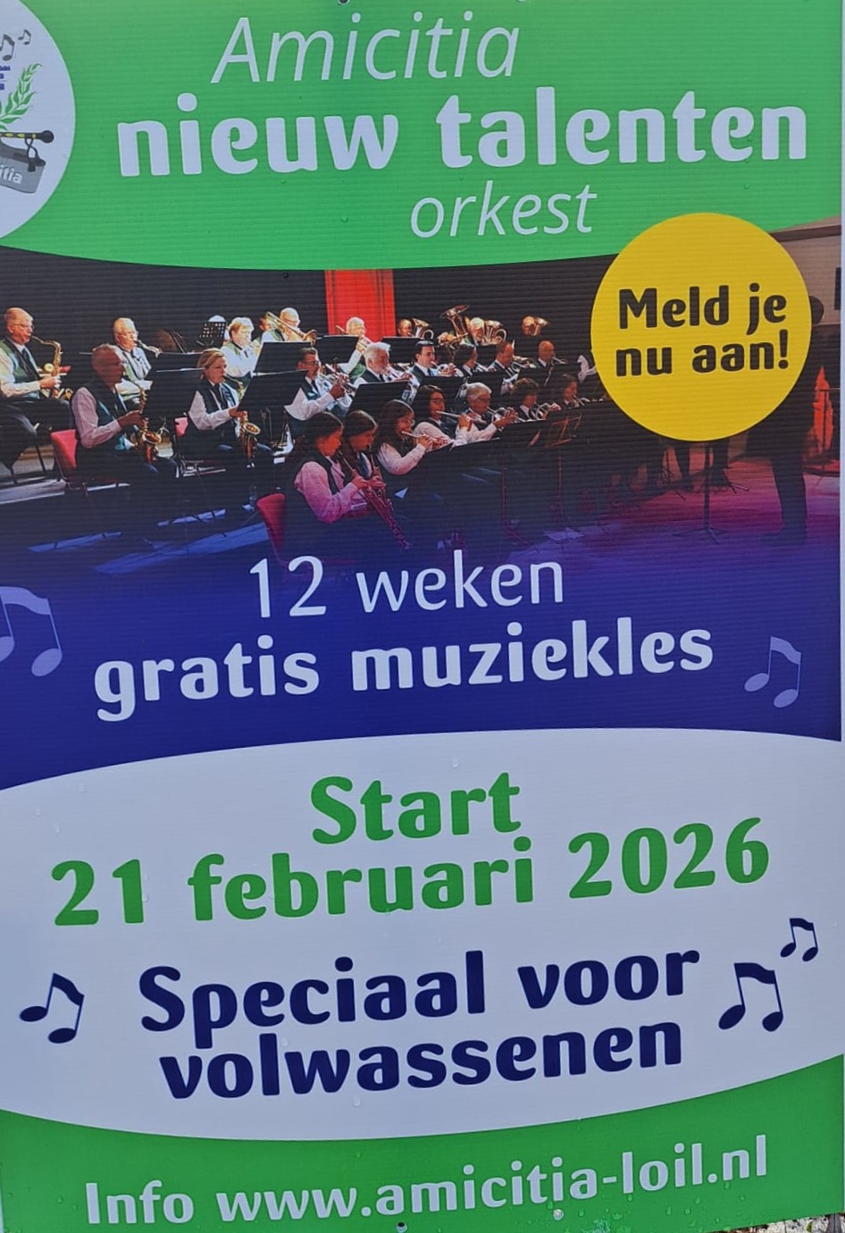 Samen gaan we kijken welk instrument het beste bij je past. In 12 weken leren we noten lezen en leren we het instrument kennen. Dit allemaal onder begeleiding van dirigent Michael van den Broek en enthousiaste leden. Je krijgt een instrument in bruikleen en de muzieklessen zijn gratis. Zaterdag 9 mei (zie https://loil.nl/activiteit/amcitia-weense-avond/) laten we tijdens een spectaculair concert horen wat we in die 12 weken hebben geleerd samen met het orkest. De eerste aanmeldingen stromen al binnen, zien we jou ook 21 februari?